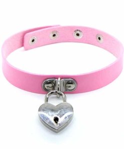 ปลอกคอหนัง แม่กุญแจหัวใจ พร้อมลูกกุญแจ รุ่น 1